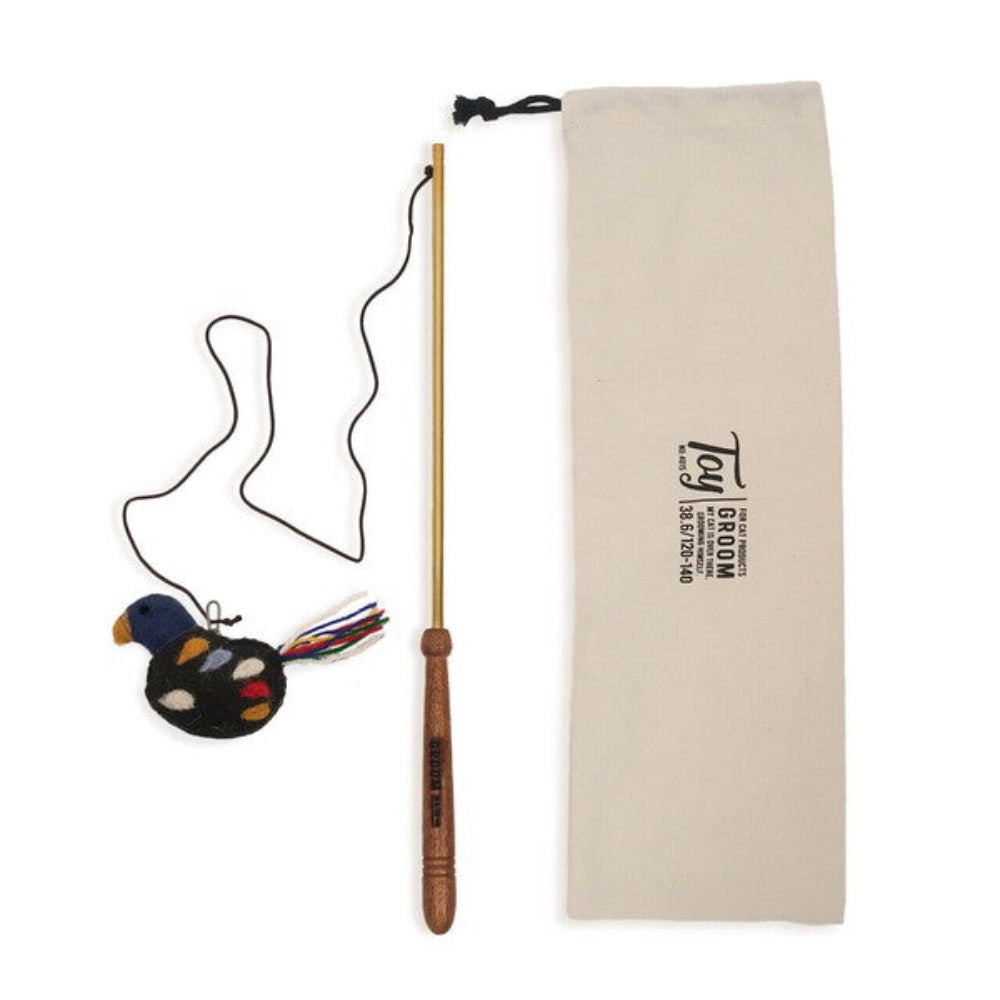 融合堅固鋼材的強度和天然材料的美感。 這款迷人的毛氈逗貓棒,手工製作,配有一個可愛的玩偶。釣竿部分採用相思木和鐵製成,即使單獨擺放在房間裡,也能與您的家居裝飾完美融合。它配有一個精美的收納袋,非常適合存放或作為禮物。